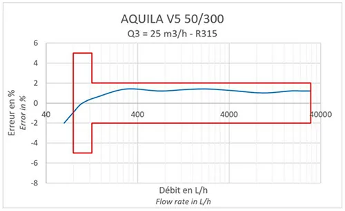 El medidor de agua AQUILA V5 DN50 de Diehl Metering está diseñado para grandes consumos en redes principales e instalaciones industriales. Con homologación MID C1, clase metrológica hasta R315 y caudal nominal de 16 m³/h, asegura una medición precisa en un amplio rango dinámico. Su cuerpo de fundición con bridas PN16, totalizador de cobre-vidrio IP68 y certificaciones sanitarias internacionales lo convierten en una solución robusta y confiable. Compatible con módulos IZAR para lectura móvil o fija.