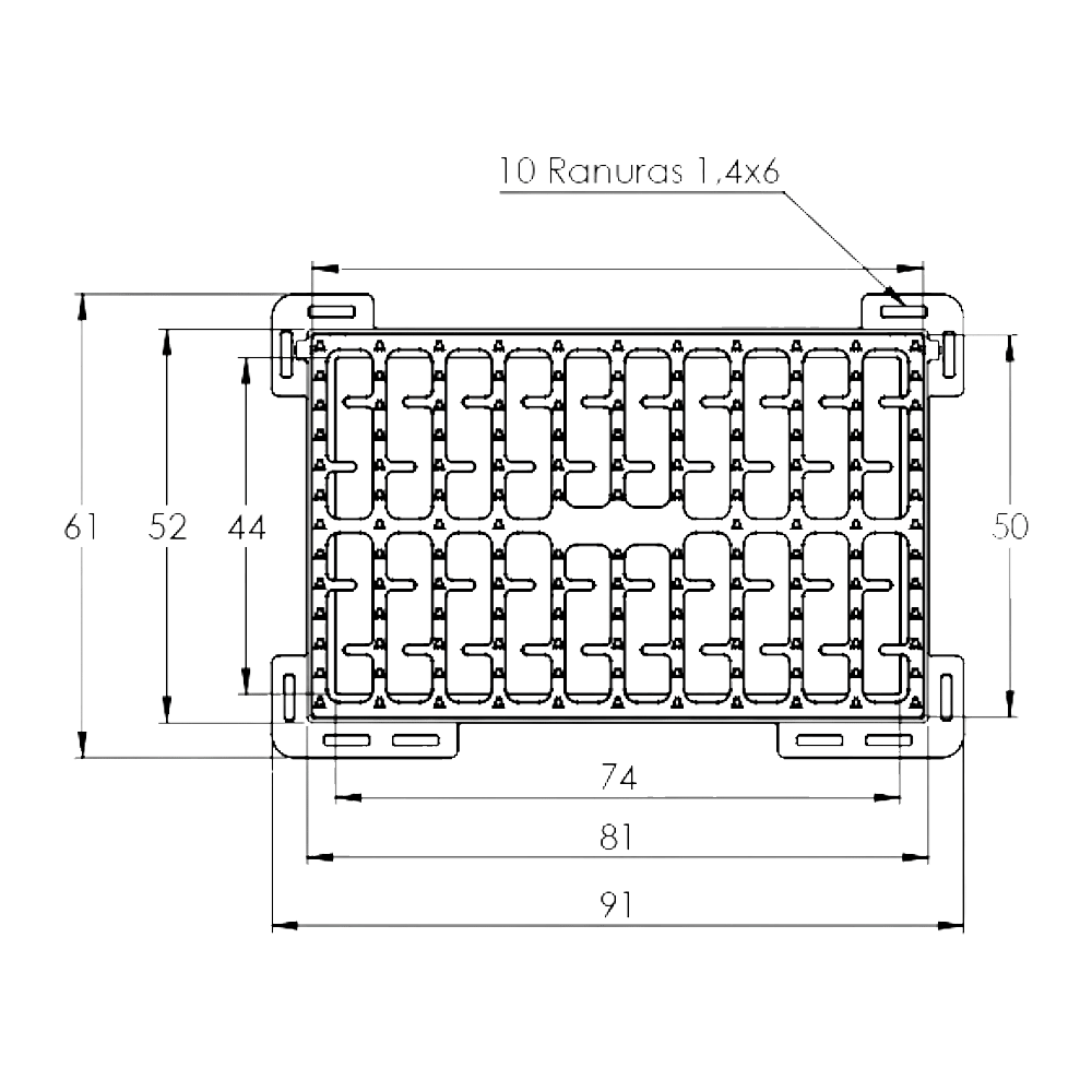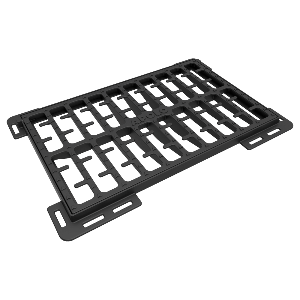 La Rejilla Sumidero en Hierro Dúctil está diseñada para sistemas de drenaje urbano y tráfico vehicular. Fabricada en hierro dúctil ASTM A536, cumple con la norma EN 124:2015 y soporta clase de carga D400. Su diseño moderno incorpora ranuras con perfiles especiales que aumentan la captación de aguas pluviales, garantizando más del 50% de apertura libre. Cuenta con pin cautivo antihurto, sistema antibloqueo entre 90° y 110° y superficie antideslizante para mayor seguridad de peatones, bicicletas y vehículos.